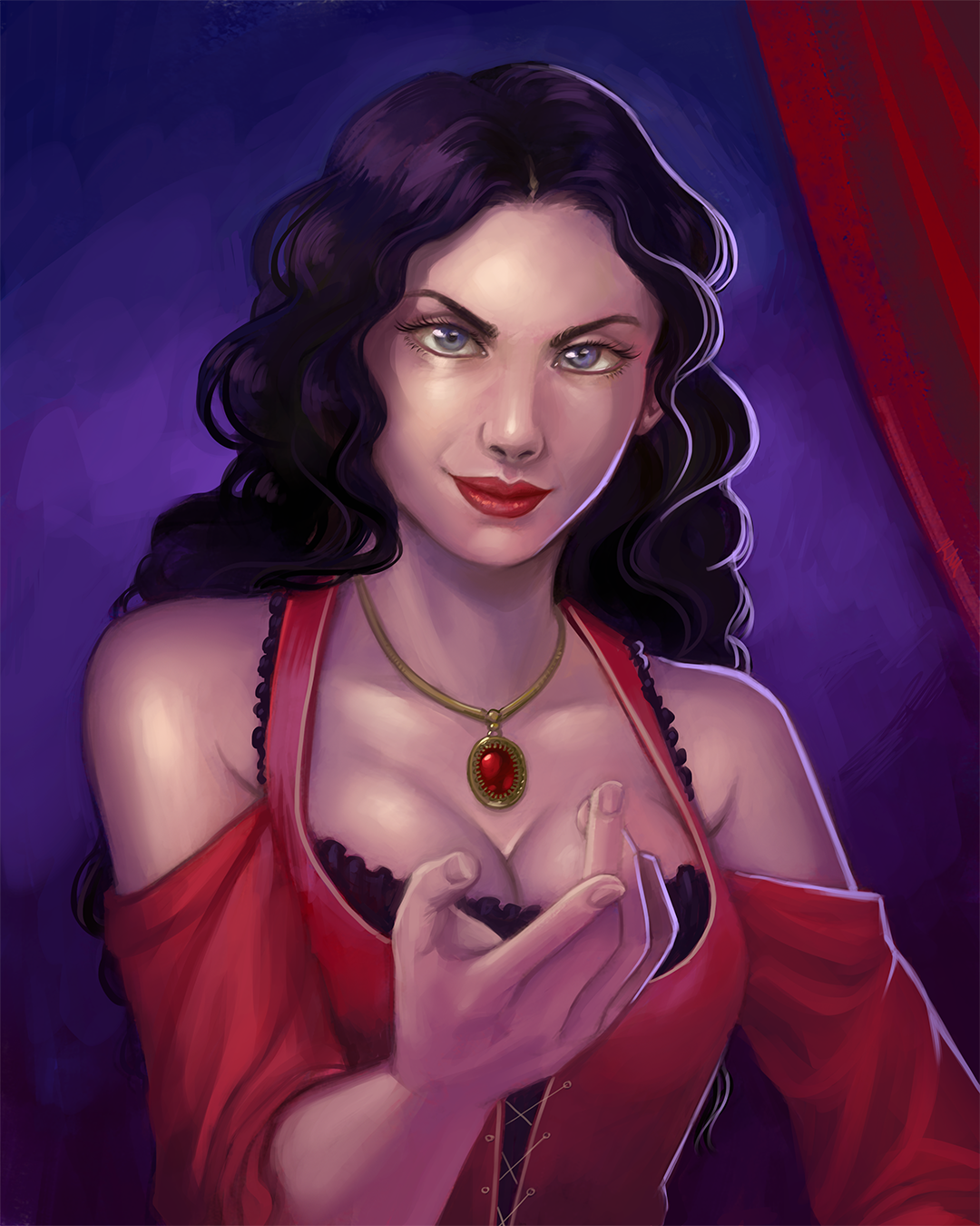 Stranded in a foreign city, Riletta used the only assets she had left - her beauty and dressmaking skills. She found a home at the Amoranthe brothel serving the customers and fixing the rips in the girls' dresses. She quickly became a favorite of the men at the brothel, and having built an impressive clientele, Riletta left the Amoranthe for the more elite Mages' Rest. After only two short years, Riletta found herself positioned as the Mages' Rest Madame after the previous Madame was found dead in her office. And while the city guard was never able to make heads nor tails of her passing, there were whispers among the girls of an empty vile of poison that had been found in the alleyway the next day.